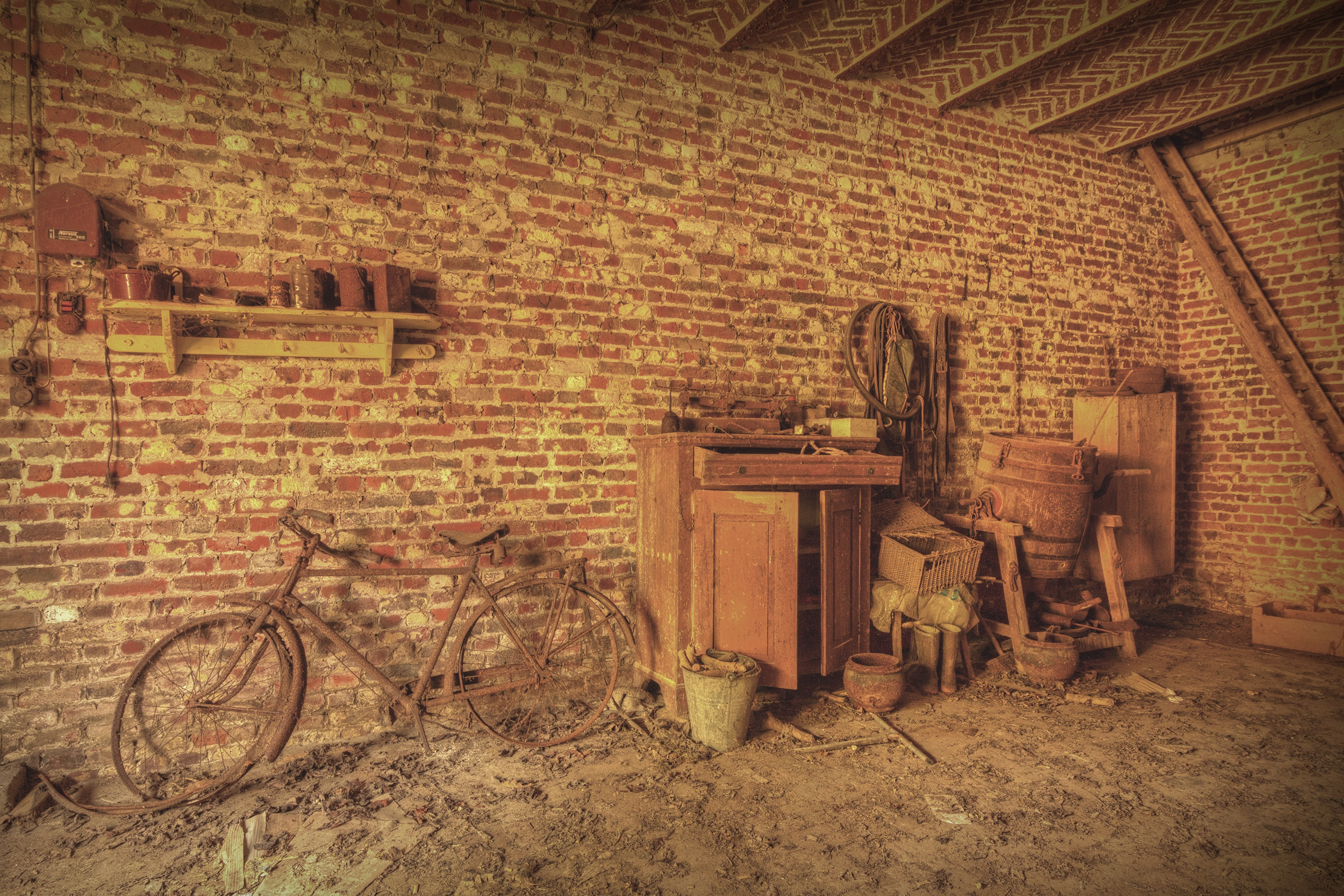 Zwei alte Porträtfotos, die auf dem Dachboden gefunden wurden. Sie erinnern an die Menschen, die hier einst lebte