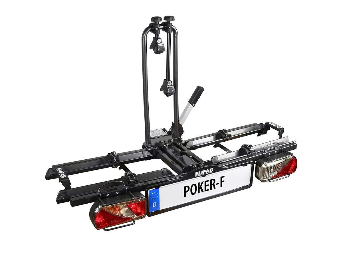 Der Eufab Poker-F ist ein klappbarer Fahrradträger für die Anhängerkupplung. Hergestellt wird er von Eufab, einem in Deutschland bekannten Hersteller für hochwertige und funktionale Fahrradträger. Der Poker-F bietet Platz für zwei Fahrräder oder E-Bikes und ist auf einfache Handhabung ausgelegt.